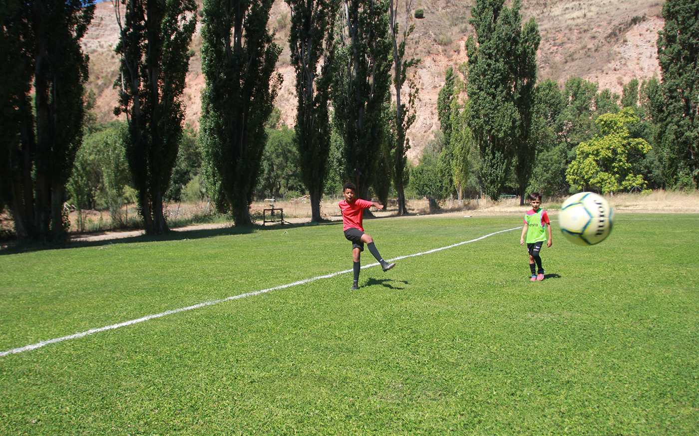 Boys and girls will train on our natural grass football field, located by the Jarama River. If there is a very high number of bookings, some participants will be moved to the artificial turf football field in Caraquiz.